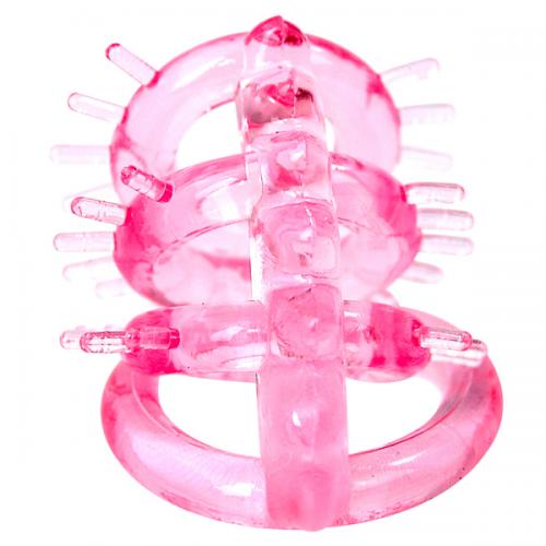 早漏の悩みやテクニック、持久力に自信のない男性諸君に朗報!!女を息子でイカセるための新兵器、4個のリングとセンター突起+女性の内壁をさらにWで刺激するヒダ装着で、息子力が強力UP!!