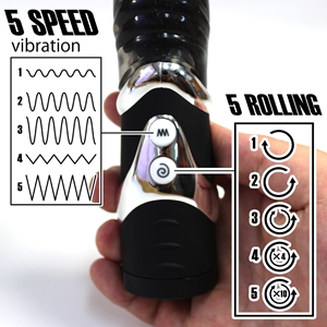 強力モーター内蔵で5つのヘッド回転パターン×5種類のバイブレーション=25通りの刺激。