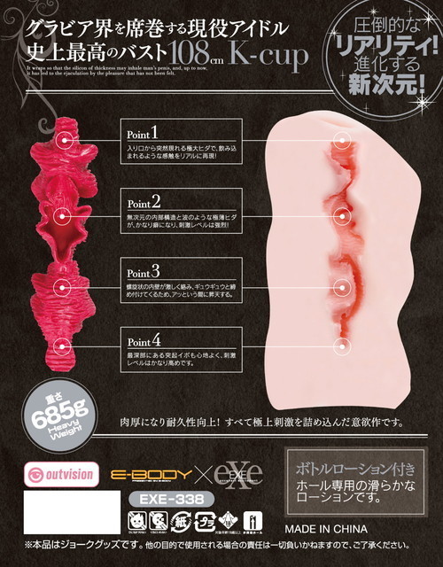 グラビア界を席巻する現役アイドル、史上最高のバスト108cmK-cupの春菜はな、ついにEXEに登場!格段に進化した新素材アルファエラストマーを100%採用!柔らかな素材と豊富な肉厚で究極の快感を追求した至極の逸品です。